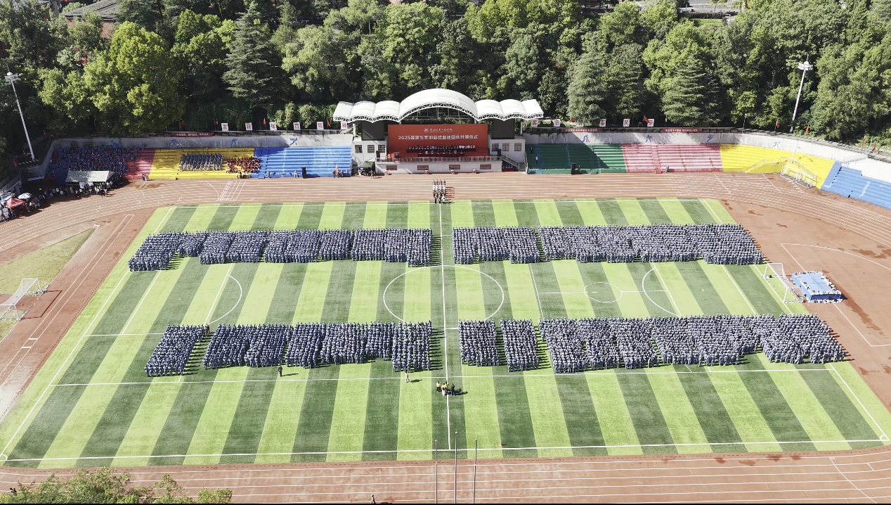 本网讯(文 张峻萍、薛树森/图 邓玉洁、魏学聪)9月30日上午,我校2025级学生军训总结大会在南校区田径场举行。全体在家校领导、十堰军分区战建处上校处长杨帆出席大会。