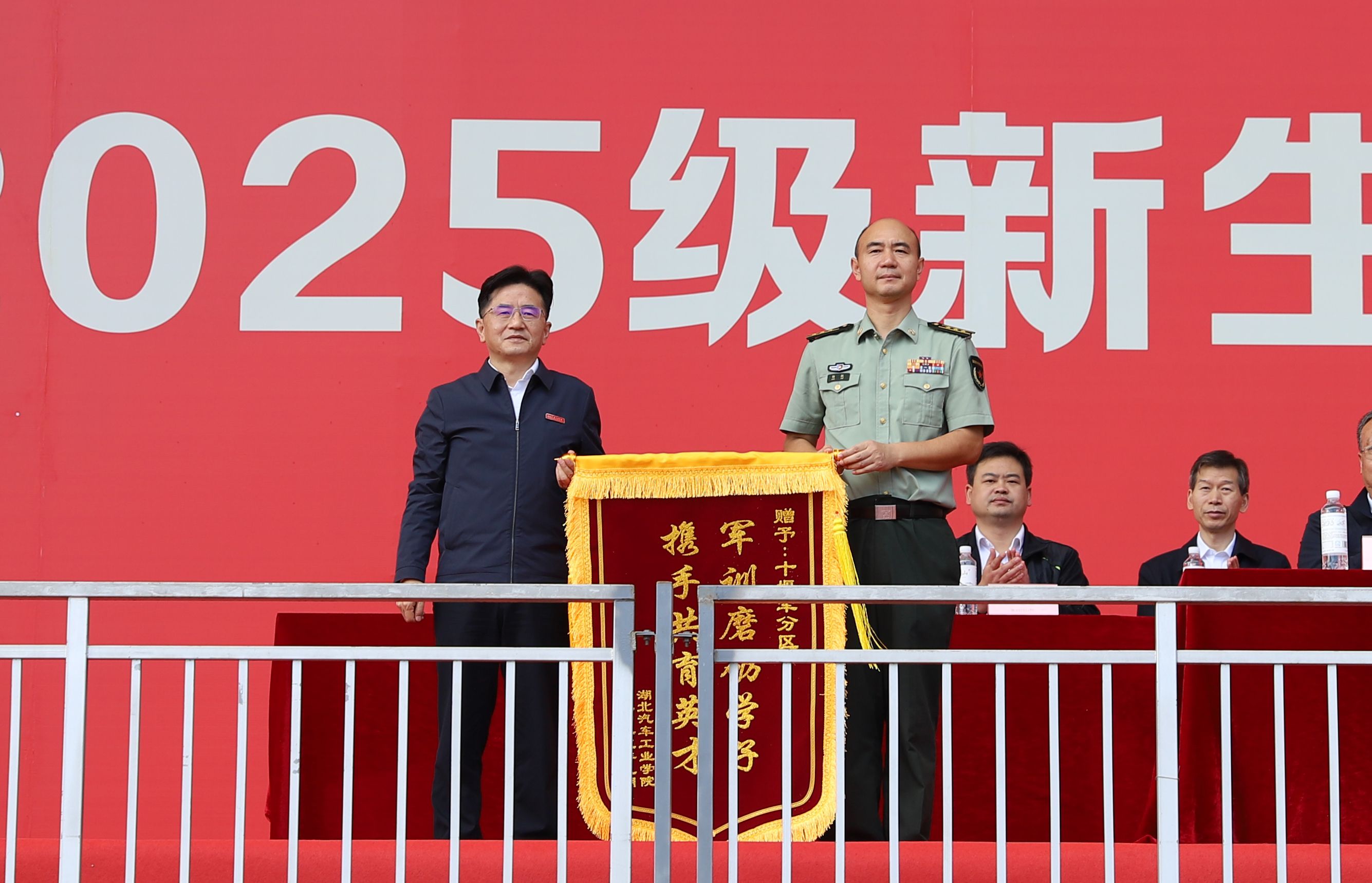 党委书记张文学向承训单位赠送锦旗,表达了学校对承训单位的深深感激与崇高敬意。