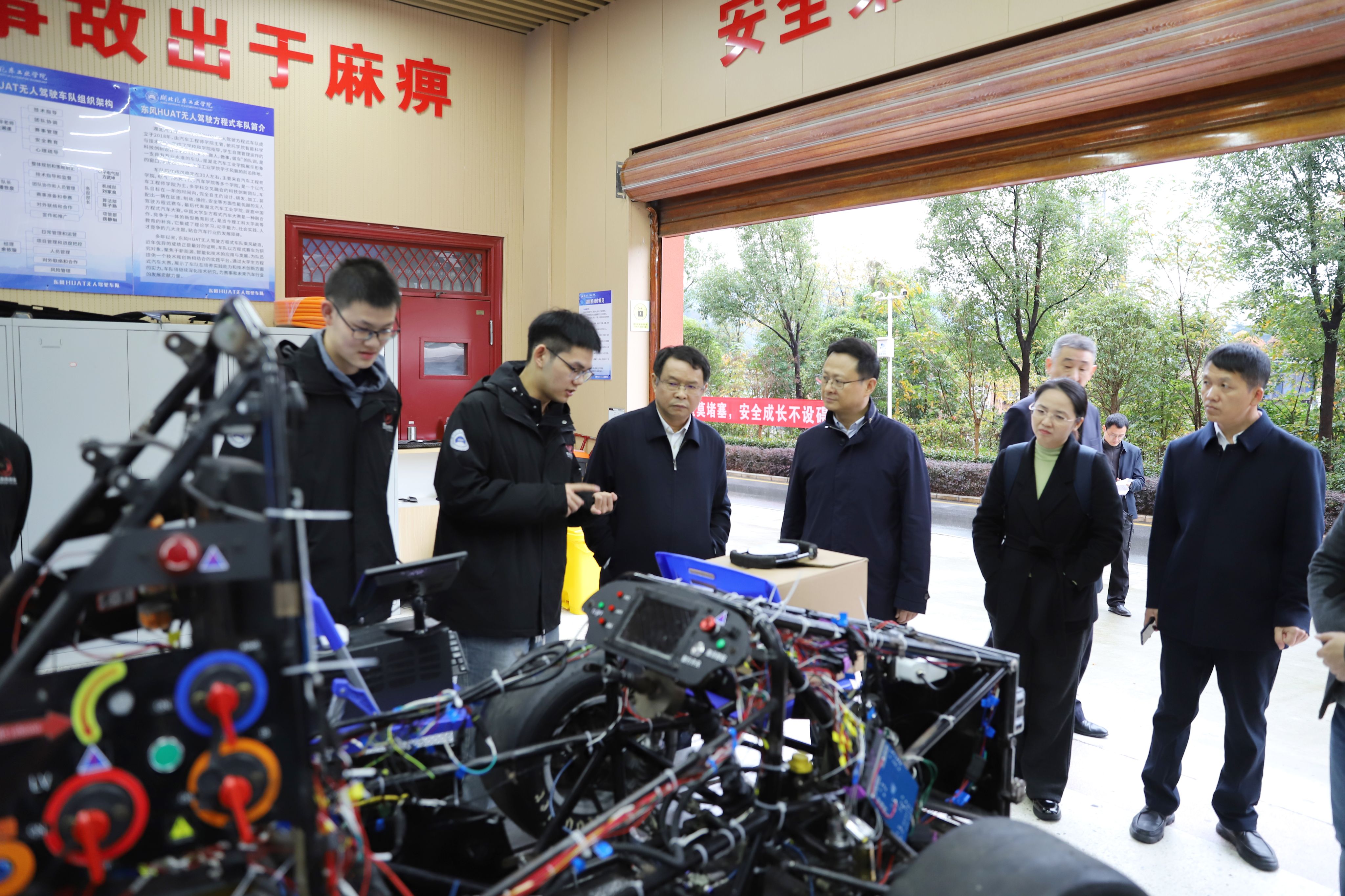 会后,郑军一行前往储能与动力电池湖北省重点实验室、汽车动力传动与电子控制湖北省重点实验室、汽车科普科创基地、HUAT车队、制造装备数字化国家工程研究中心汽车制造自动化分中心、汽车智能制造工程实训中心、汽车零部件轻量化技术转化中试研究基地进行了参观调研。