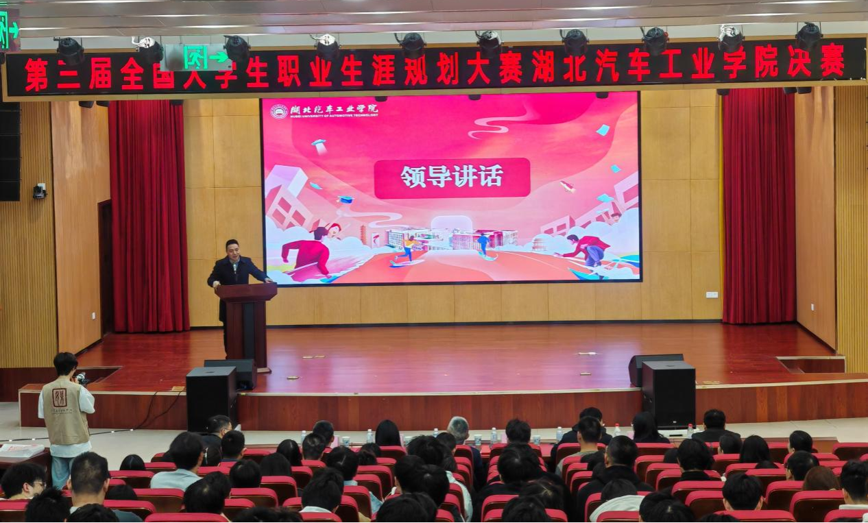 本网讯(文/金涛)11月21日下午,以“筑梦青春志在四方,规划启航职引未来”为主题的第三届全国大学生职业规划大赛湖北汽车工业学院决赛,在产教大楼四楼报告厅和5101报告厅圆满落幕。校党委常委,党政办公室主任王文山,教育部就业创业指导委员会委员高泽金出席,武汉诺禾创联科技有限公司总经理郑东琴、武汉格⽊教育科技有限公司资深就业指导规划师蔡世浩,学工部、教务处、招生与就业处负责人,各二级学院党委书记、副书记及550余名师生代表观摩助阵。