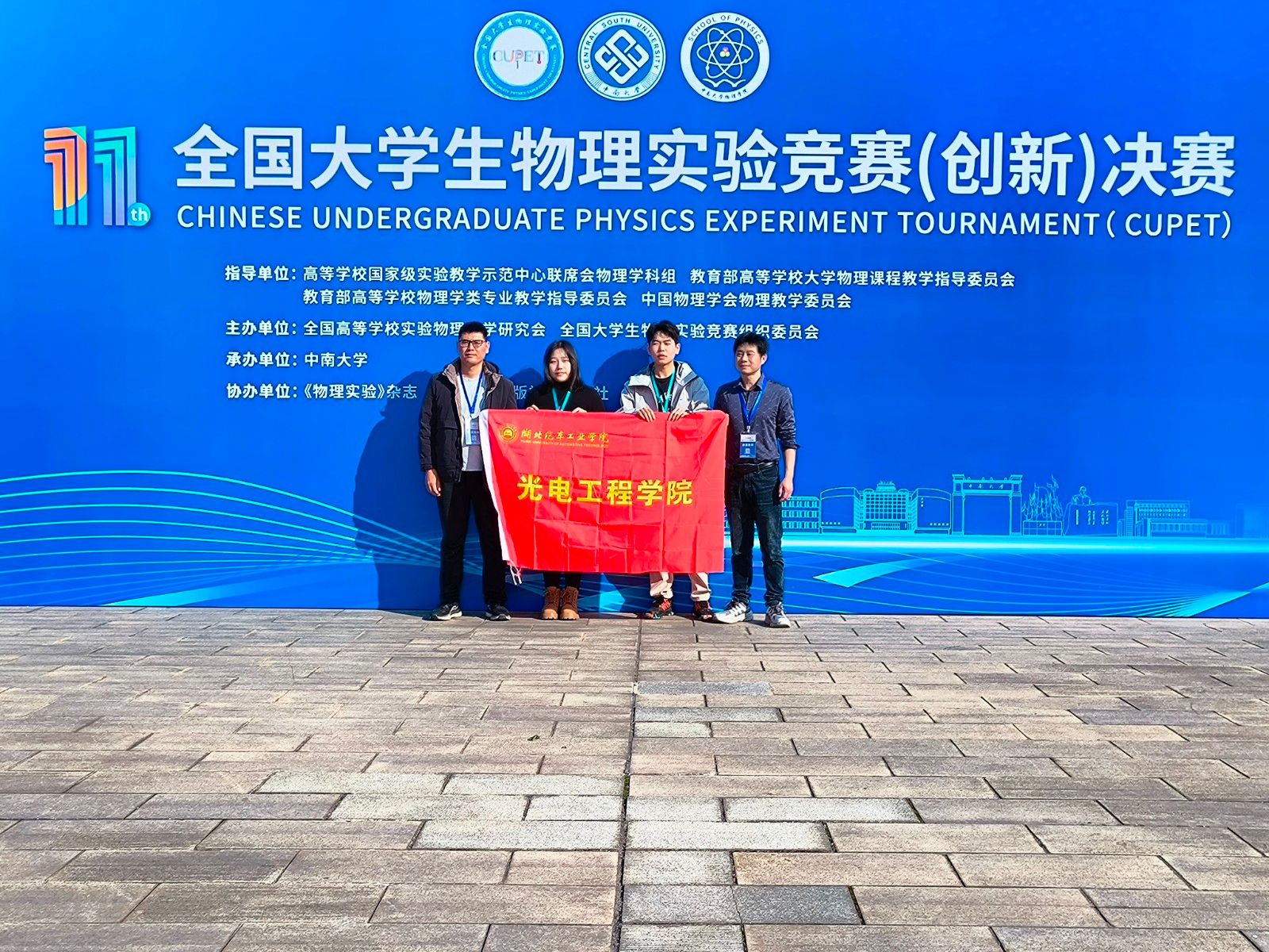 本网讯(文/陈伟)11月21-24日,第十一届全国大学生物理实验竞赛(创新)决赛在中南大学举行。本届赛事共有全国722所高校、3260支队伍、18985名师生报名参赛,最终331所高校的750支队伍,共计2000余名师生参加本次决赛。我校推选的作品《刚体的进动》(唐心悦、陈志轩、廖杰、喻婧妍、李子龙,贺泽东、朱占武老师指导)喜获国家一等奖,我校荣获优秀组织奖。