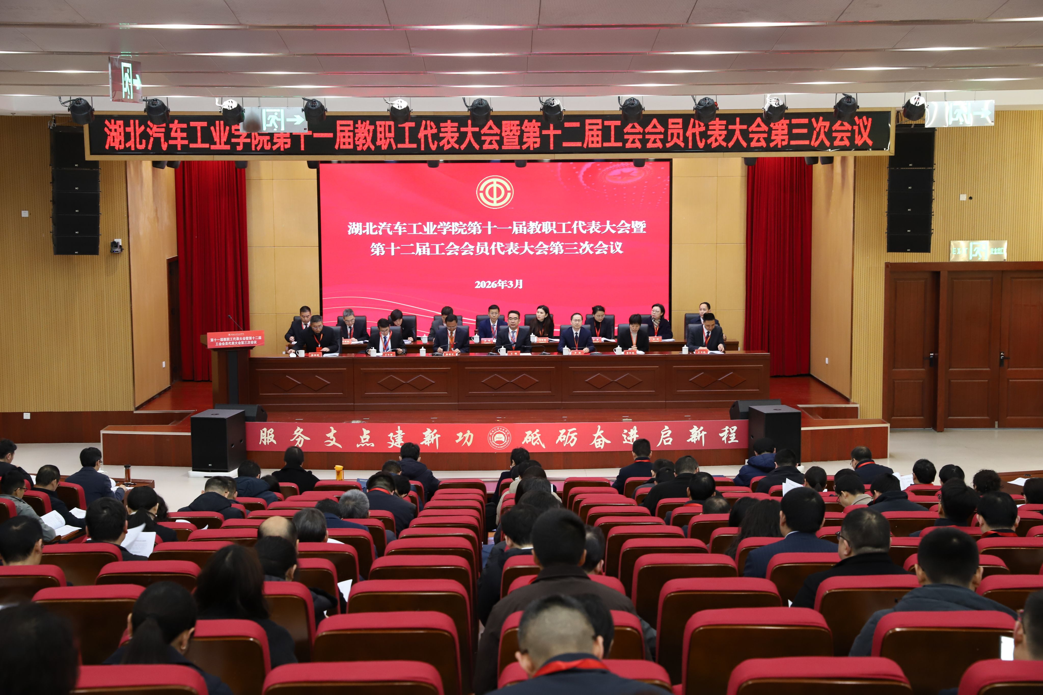 大会还听取并审议了提案工作报告、绩效工资分配管理办法起草说明、《湖北汽车工业学院“十五五”事业发展规划》、学校财务工作报告、财务预算执行和决算审计报告、工会工作报告和工会经费审查工作报告。