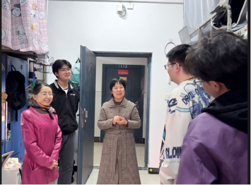 走访中,张红霞与同学们亲切交流,细致询问学习进度、日常作息及专业学习中的难点,并查看宿舍环境与内务整理情况。针对学生发展需求,她重点推介学校小语种课程资源,鼓励有俄语、法语基础的同学重拾技能,拓展知识储备,为升学和就业拓宽路径。同时,她叮嘱学生珍惜大学时光,合理规划学业与生活,提升综合素养,不负青春与学校期望。