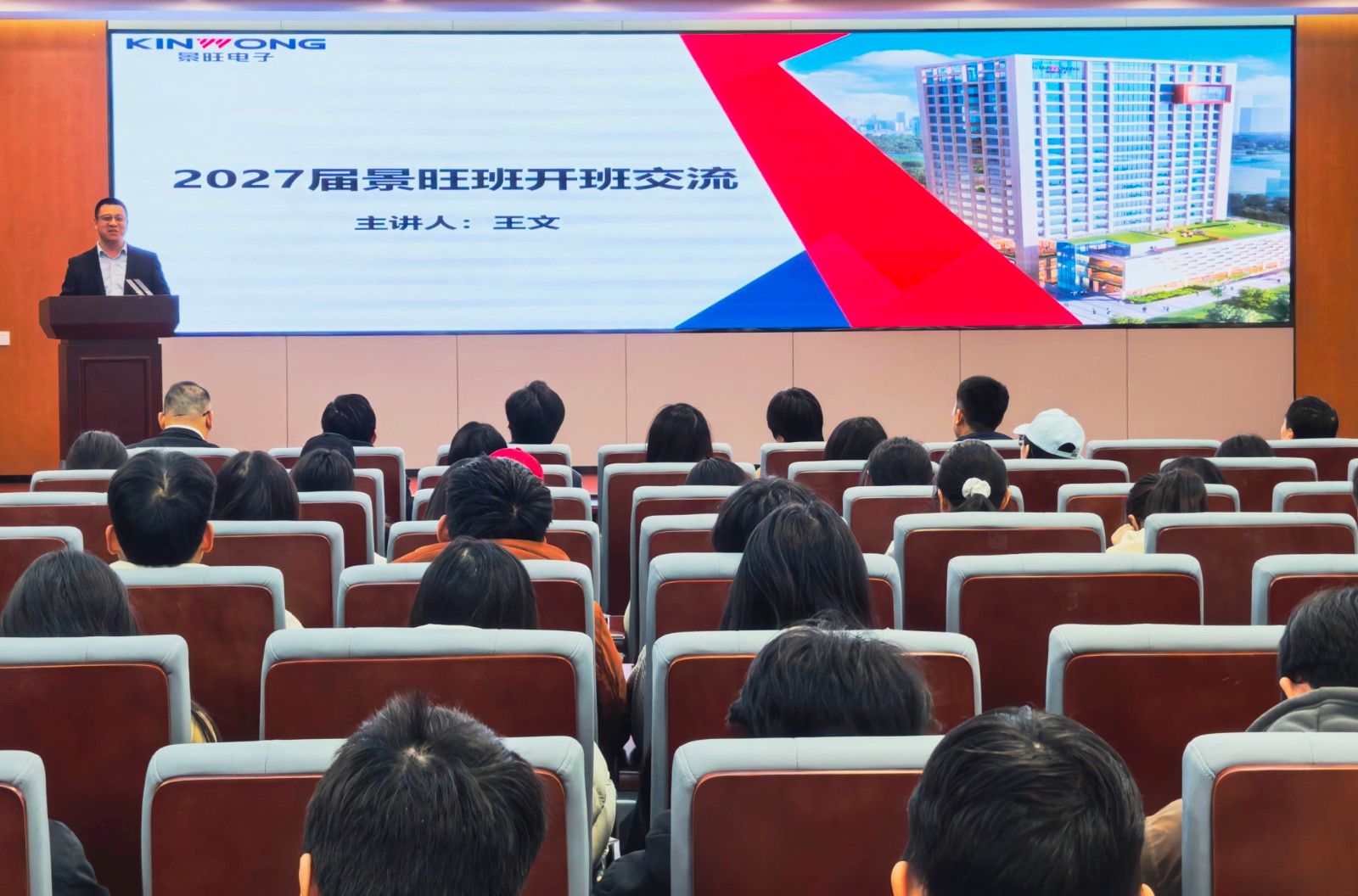 王文从景旺电子的发展状况与战略规划、人才培养发展体系以及对定向班的期待三个方面,系统阐释了景旺电子的用人理念及人才成长储备体系。他指出,景旺电子非常注重技术基础与综合能力的融合,追求管理与技术的协同发展,努力培养造就一批企业堪当重任的复合型人才。他围绕职业能力要求,从通用能力、综合素养和专业能力三个维度对定向班学生提出期望,鼓励大家明确目标、持续成长。