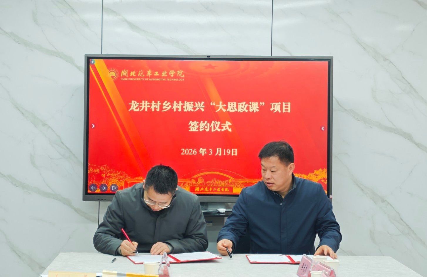 会议伊始,马克思主义学院院长黄永昌汇报了自2019年“理论热点面对面”实践基地成立以来的结对宣讲工作情况,并对2026年工作规划作了详细解读。刘子龙充分肯定了“理论热点面对面”结对宣讲工作成效,并就进一步提升结对宣讲实效,建好乡村振兴大思政课基地提出要求。随后,双方围绕理论宣讲、实践调研、惠民服务、“大思政课”建设进行了深入讨论,并签订了“乡村振兴大思政课基地建设”合作协议。
