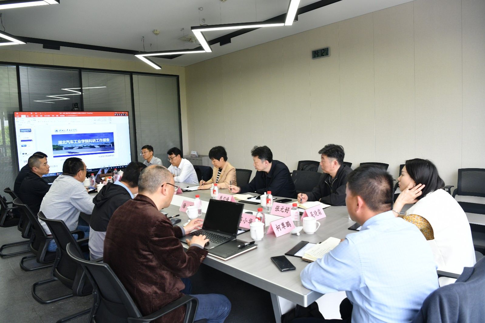 科新电池(系统)湖北有限公司总经理王敬超、启新热系统分公司总经理蒋小华、东风汽车用品(湖北)有限公司总经理柯尊鹏、驭新智能底盘系统(湖北)有限公司总经理助理吴晓霜及技术中心总监徐刚,以及学校合作发展处、教务处、武汉产学研基地相关人员参加了座谈交流。(审稿 周恩德)