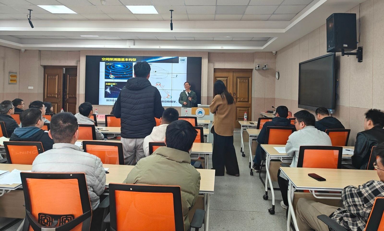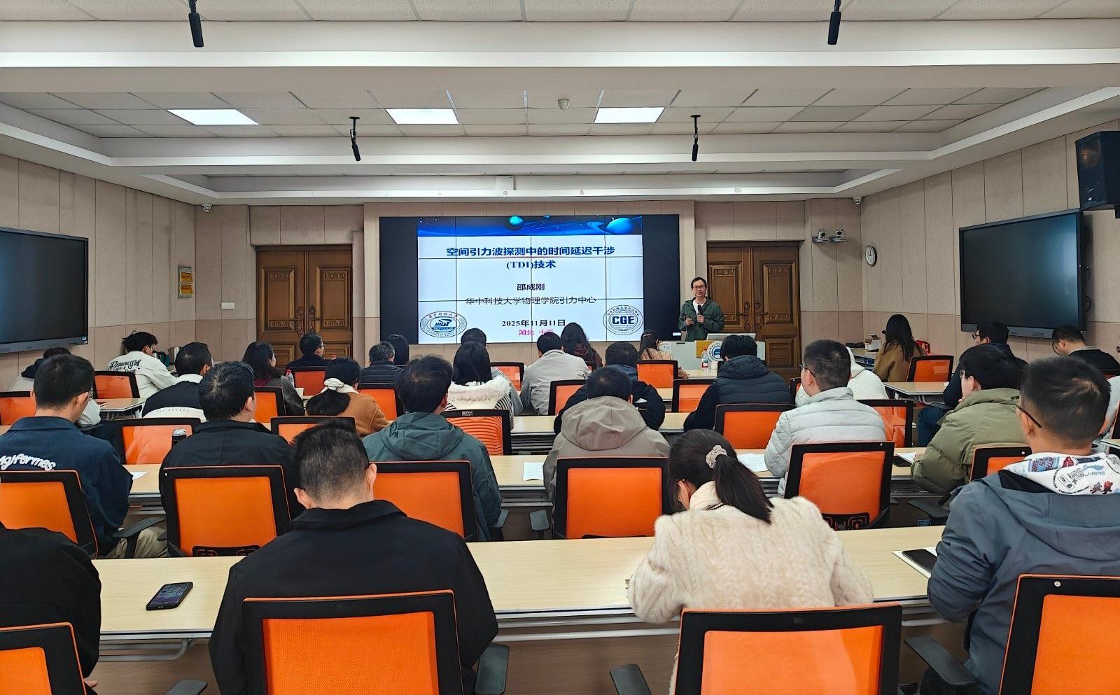 报告会上,邵成刚教授从空间引力波探测的重大科学意义切入,深入浅出地介绍了时间延迟干涉技术的核心原理、主要研究内容以及在国家重大科技基础设施中的关键作用,并从自身科研经验出发,分享了在精密测量物理领域研究的心路历程。