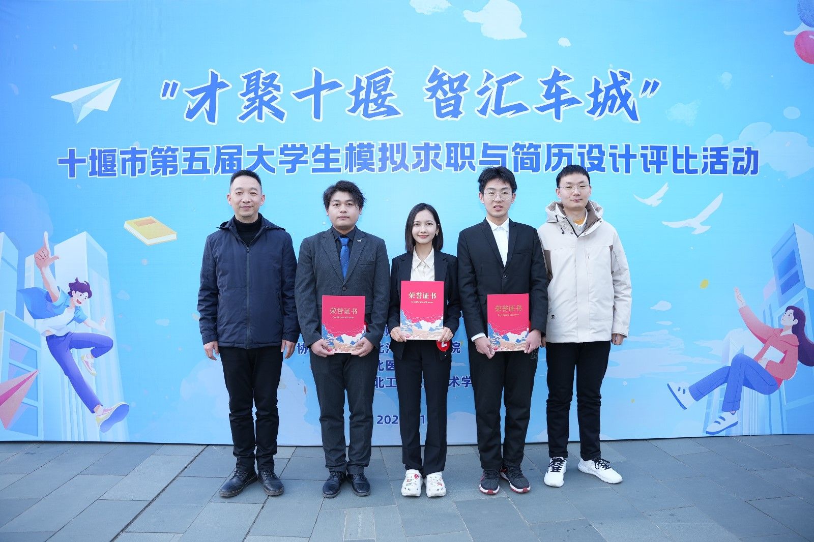 本网讯(文/金涛)11月27日下午,“才聚十堰 智汇车城”十堰市第五届大学生模拟求职与简历设计评比活动在汉江师范学院图书馆报告厅圆满落幕,我校学子外语外贸学院江玉珍同学荣获大赛二等奖、汽车商学院潘金山同学荣获大赛三等奖、汽车工程学院谢金良同学获得比赛优胜奖。