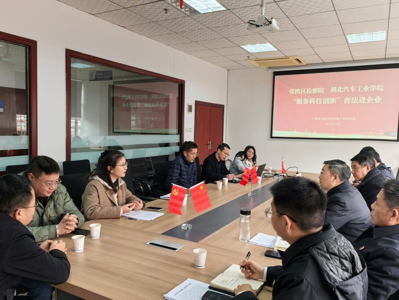 本网讯(文/董文波)12月2日上午,我校法学与知识产权学院党委施洋支部联合十堰市张湾区人民检察院、十堰市张湾区知识产权局,在十堰市高端智能装备产业孵化园开展“聚焦企业知识产权需求 激活科技创新发展动能”联合主题党日活动。学校法学与知识产权学院党委书记计毅波、十堰市张湾区人民检察院党组书记、检察长汪朝晖、十堰市张湾区知识产权局副局长明海等党员代表及园区企业负责人共15人参加活动。