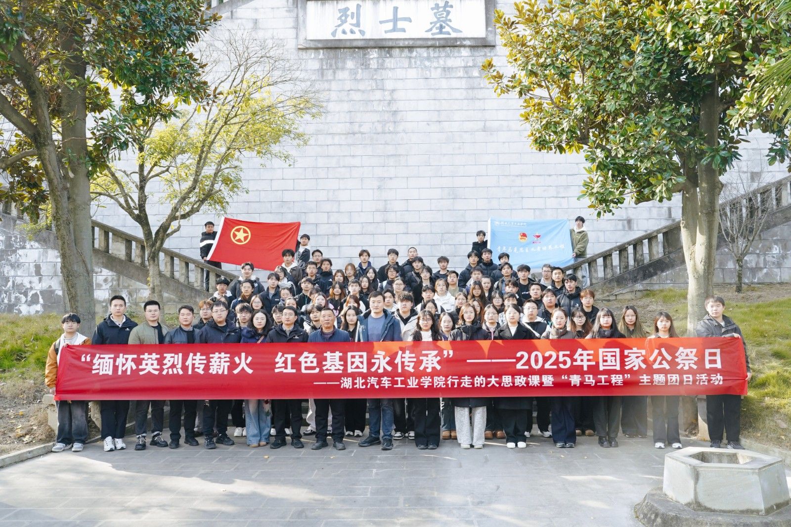 本网讯(文/陈灿、徐修良)2025年国家公祭日来临之际,湖北汽车工业学院90余名师生奔赴武当山老营革命烈士陵园,开展以“缅怀英烈传薪火 红色基因永传承”为主题的“行走的大思政课”暨“青马工程”主题团日活动,旨在引领青年学子在追思中感悟初心,在实践中厚植家国情怀。