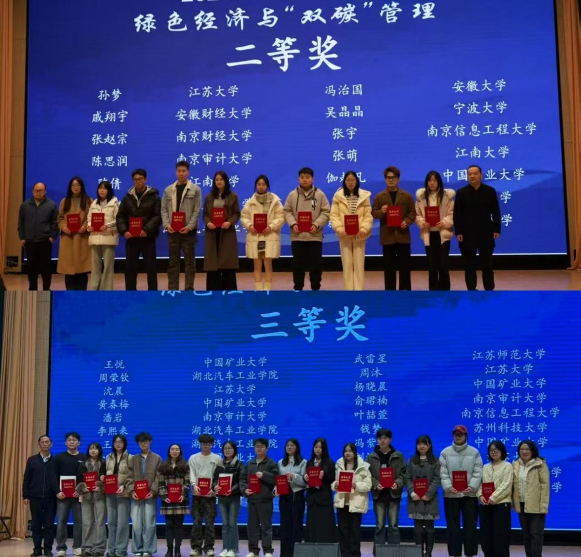 本网讯(文/赵启豪、董海燕)12月6日,由江苏省管理学类研究生教育指导委员会主办、南京信息工程大学研究生院与商学院承办的“2025年江苏省研究生学术创新论坛——绿色经济与‘双碳’管理学术会议”在南京顺利召开。汽车商学院物流工程与管理专业的赵启豪等多名研究生在本次高水平学术论坛中表现出色,其学术成果获得评审专家一致认可,最终荣获二等奖1项、三等奖2项,展现了我校学子扎实的学术素养与敏锐的时代洞察力。