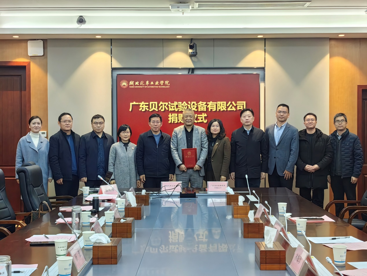 本网讯(文/图 陈熙泽、汪栖如)1月11日,广东贝尔试验设备有限公司董事长、我校98级工商管理系杰出校友崔克军,公司法人代表林海珍,湖北区总经理闫智竟一行来校,在产教大楼三楼多功能会议室举行捐赠签约仪式。仪式由光电工程学院、新能源学院、汽车未来技术学院院长熊永臣主持。