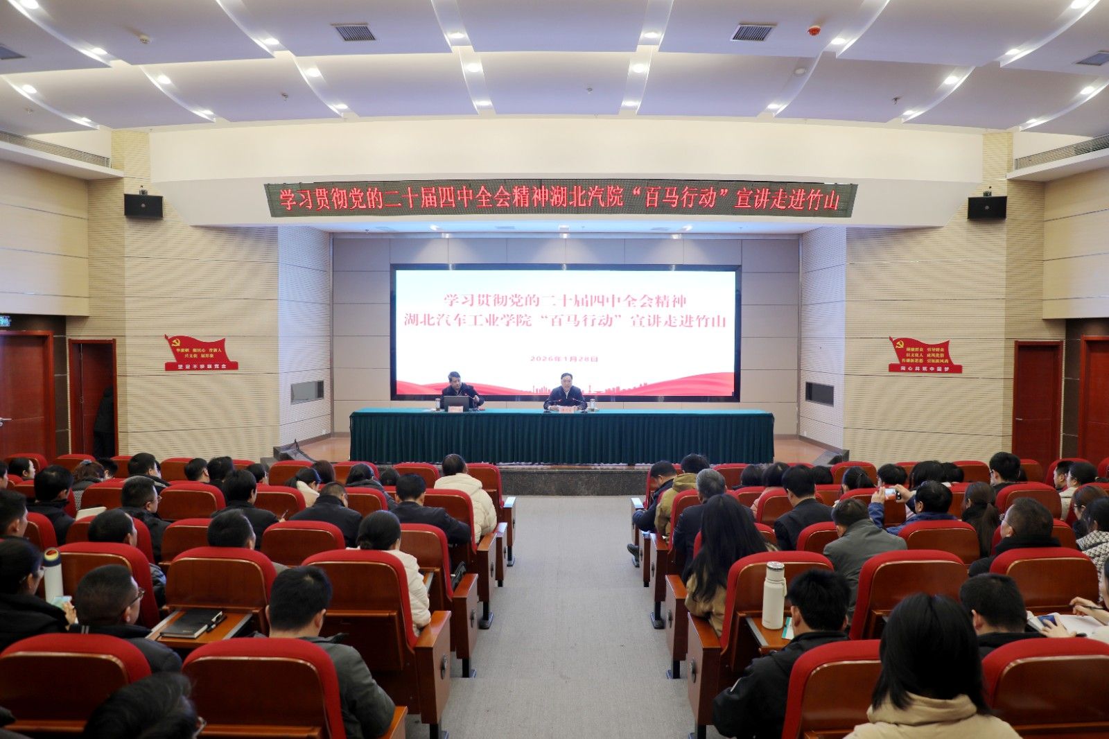 本网讯(文/图 王莽莽)1月28-29日,湖北汽车工业学院“百马行动”理论宣讲队赴竹山县“理论热点面对面”实践基地开展党的二十届四中全会精神宣讲暨“七送”惠民活动。此次活动共设1个主会场,5个分会场,竹山县600多名党员干部参会。
