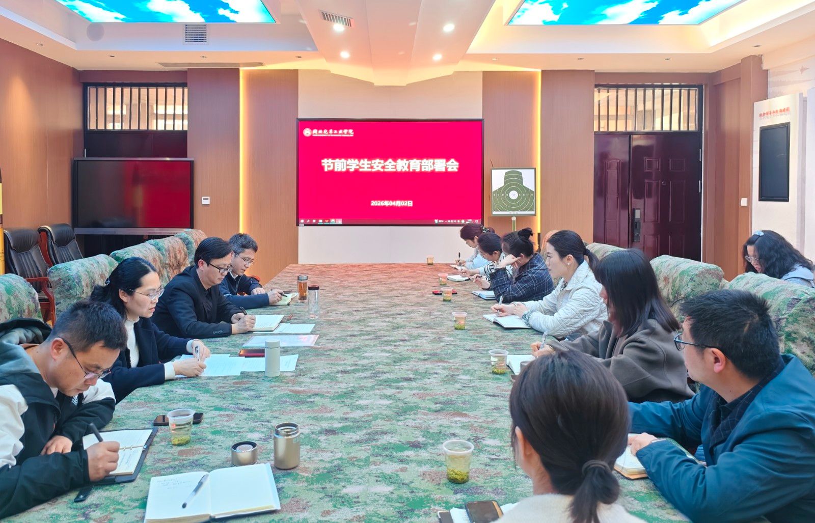 最后,学工部部长王关锋强调,一要全面做好学生离校前的安全检查,彻底排查各类安全隐患;二要提前落实假期安全教育,精准统计学生离校、留校信息,及时掌握学生动态,强化家校沟通,形成工作闭环;三要高标准、严要求做好假期应急值班与巡寝工作,严守值班纪律,确保假期安全稳定。(审稿 杜昕俊)