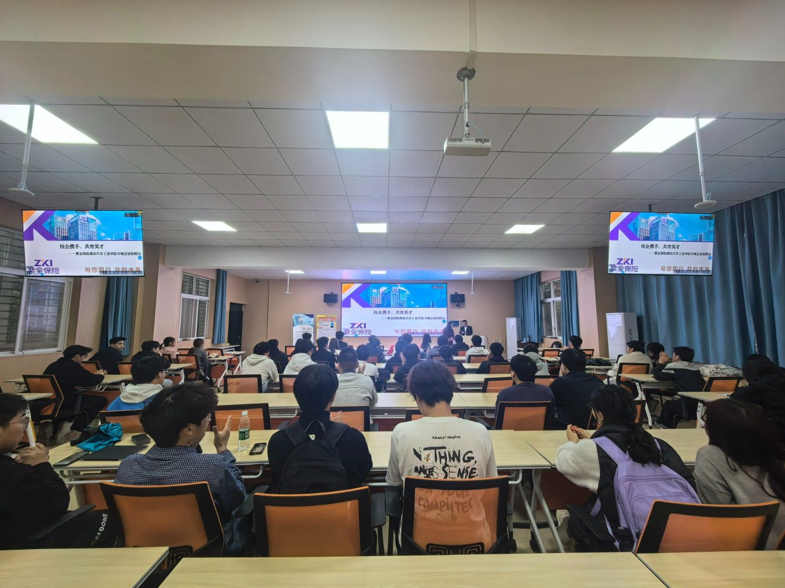 在宣讲会上,朱刚勇全面解读了企业发展历程、行业前景、岗位需求等方面进行了详细介绍,欢迎我校优秀学子加盟。在互动交流环节,同学们岗位任职要求、福利待遇、职业发展通道等进行提问,现场气氛热烈。本次宣讲,线上线下累计收到学生简历100余份。
