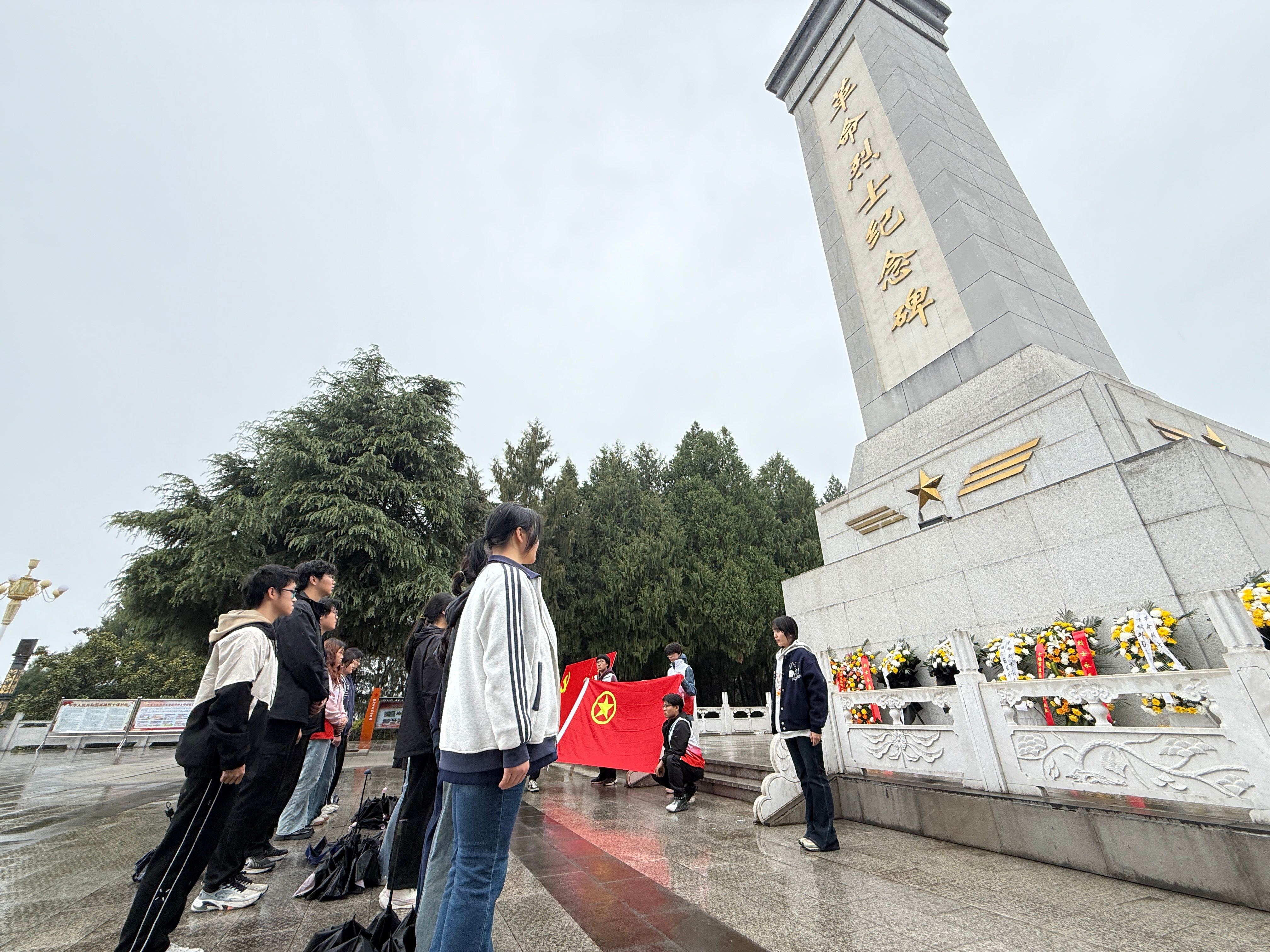 在庄严肃穆的革命烈士纪念碑前,师生们整齐列队,怀着崇敬的心情向革命先烈默哀。面向鲜红的团旗,全体团员高举右拳,重温入团誓词。结合湖北省“追寻·2026·清明祭英烈”主题活动,师生们通过线上献花的方式缅怀先烈,以绿色、环保的“云祭扫”向英雄烈士致以崇高敬意。