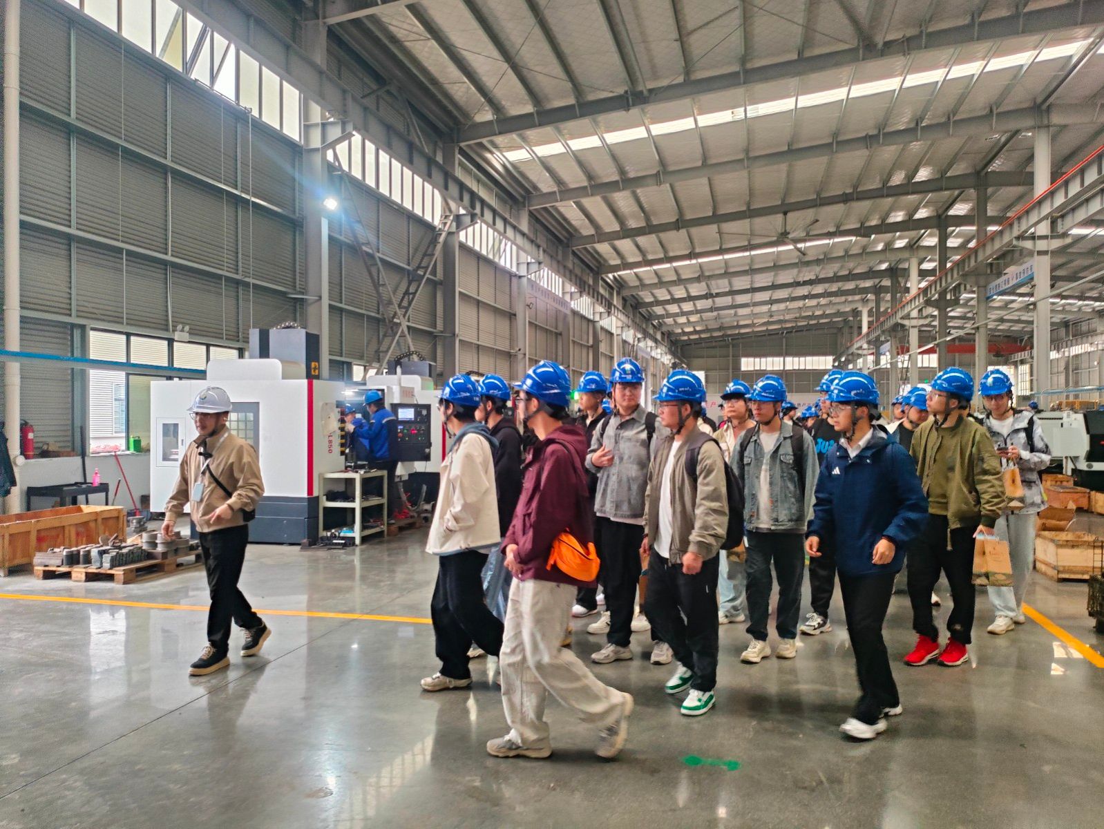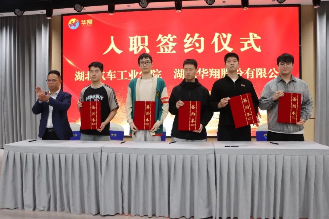 在政校企三方共同见证下,我校5名应届毕业生现场办理入职手续,湖北京能电力装备、宽程自动化科技等5家重点企业同步开展岗位对接,学生参与热情高涨,求职意愿强烈,对接效果显著。随后,师生在汽院校友韦青庭的讲解下,实地观摩湖北华翔股份有限公司实训基地与生产车间,深入了解企业生产流程、技术研发与职业发展通道。