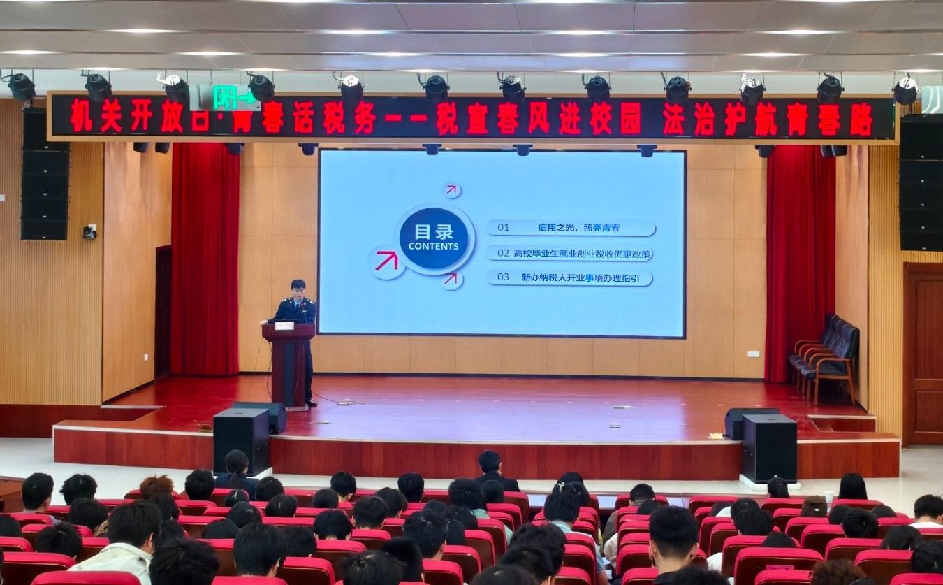 来自张湾区税务局的税务干部孙长江以“信用之光,照亮青春”为题,结合真实案例,深入浅出地讲解了纳税信用的重要性、失信行为的法律后果,以及国家支持大学生创业就业的系列税费优惠政策。还特别强调,纳税信用不仅是企业经营的“通行证”,更是个人信用的重要组成部分,与贷款、求职、考试等息息相关。姚晓莉则为同学们带来了“办税第一课”,现场演示了电子税务局“新办纳税人智能开业”全流程操作,让同学们对智慧税务和便捷办税有了直观认识。