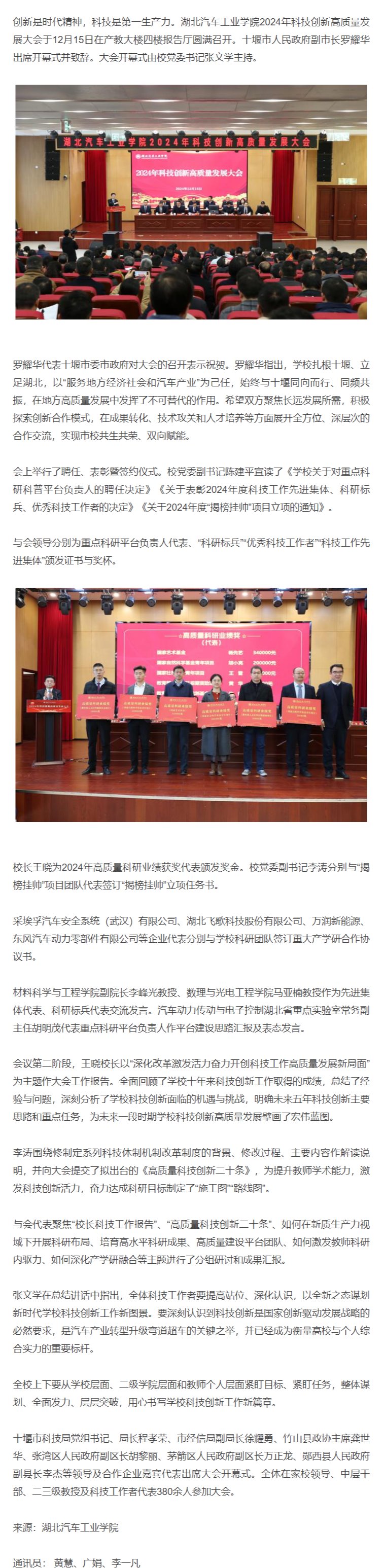 【网易】湖北汽车工业学院2024年科技创新高质量发展大会圆满召开