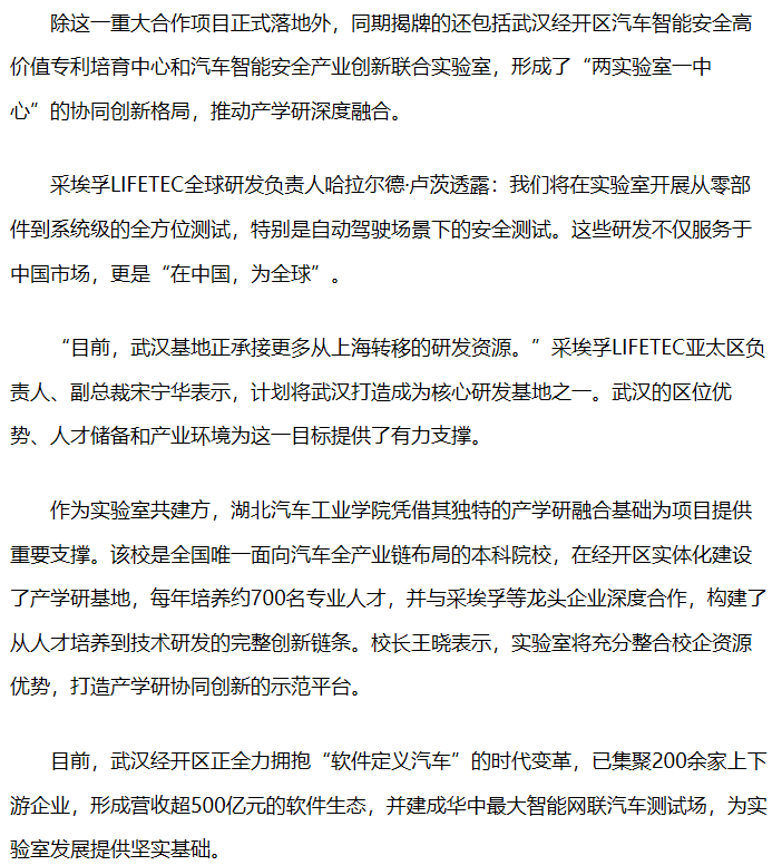 【荆楚网】汽车智能安全“一带一路”联合实验室在武汉经开区揭牌