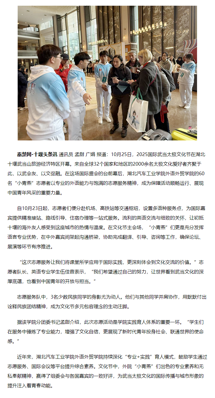 【秦楚网】湖北汽车工业学院“小青燕”志愿者多语种服务太极盛会