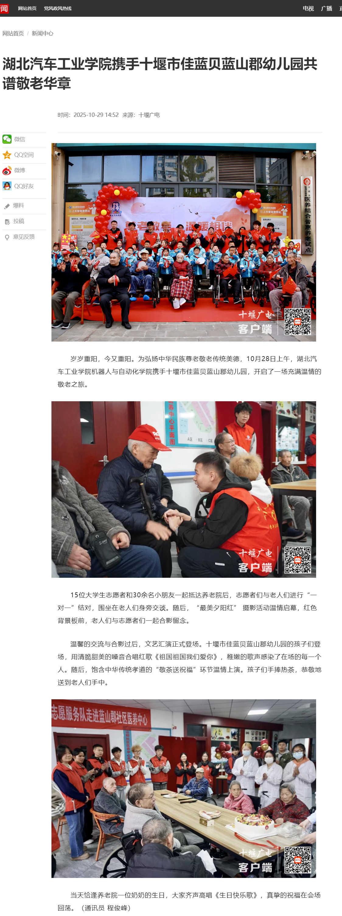 【十堰广电】湖北汽车工业学院携手十堰市佳蓝贝蓝山郡幼儿园共谱敬老华章
