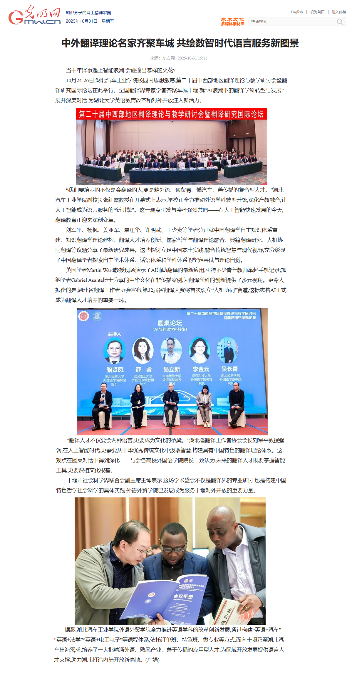 【光明网】中外翻译理论名家齐聚车城,共绘数智时代语言服务新图景