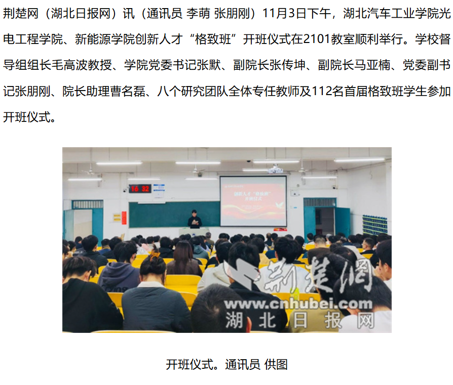 【荆楚网】湖北汽车工业学院创新人才“格致班”正式开班