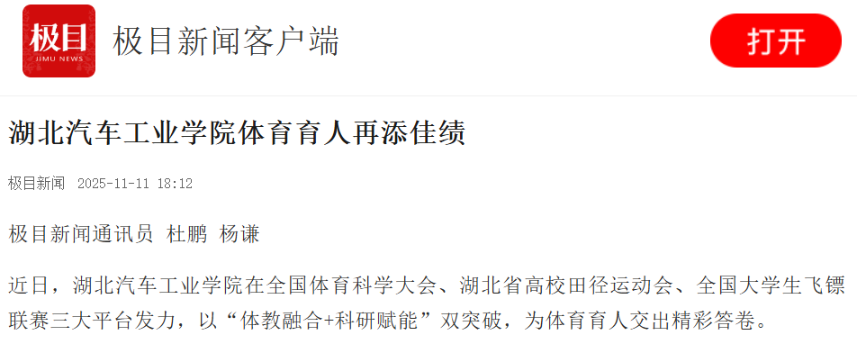【极目新闻】湖北汽车工业学院体育育人再添佳绩