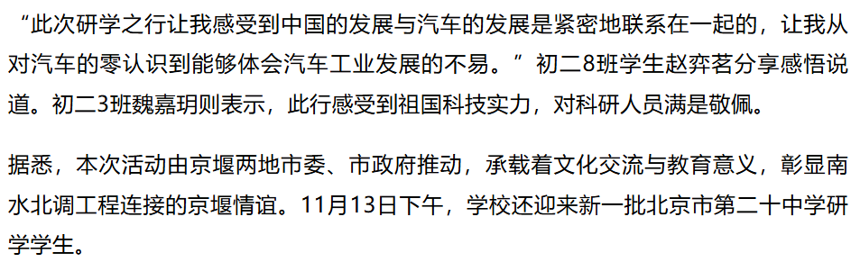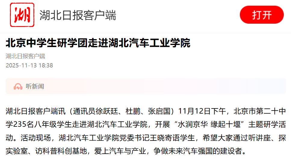 【湖北日报】北京中学生研学团走进湖北汽车工业学院