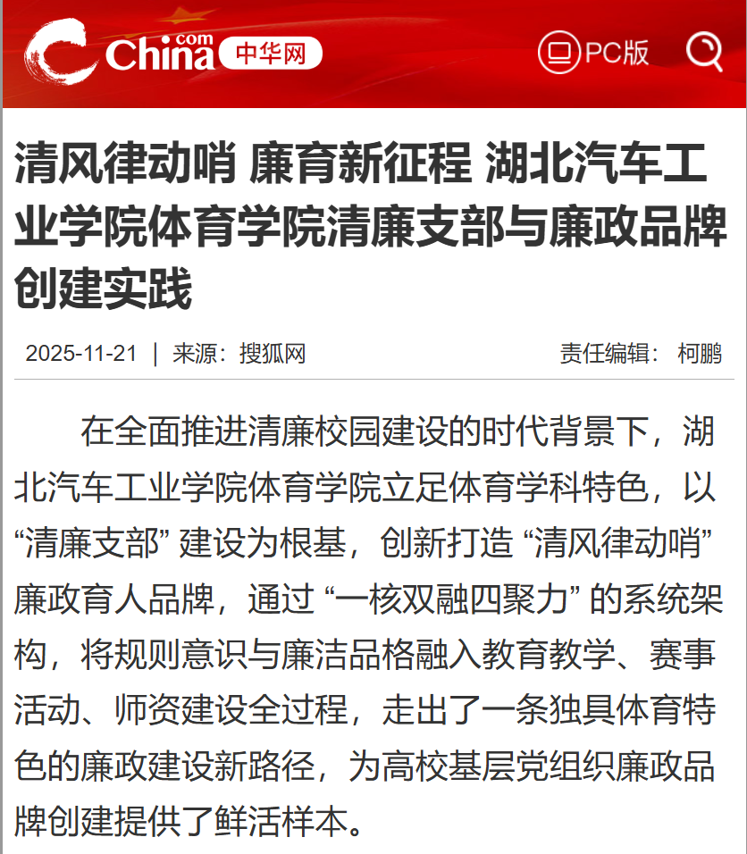 【中华网】清风律动哨 廉育新征程 湖北汽车工业学院体育学院清廉支部与廉政品牌创建实践
