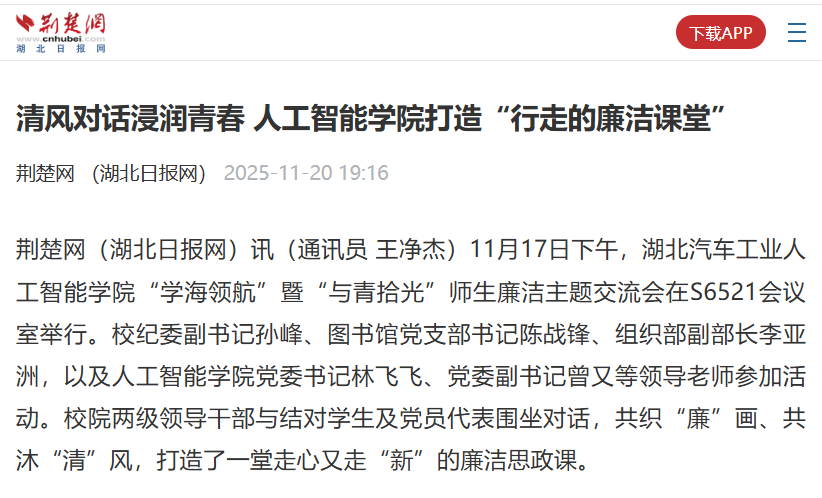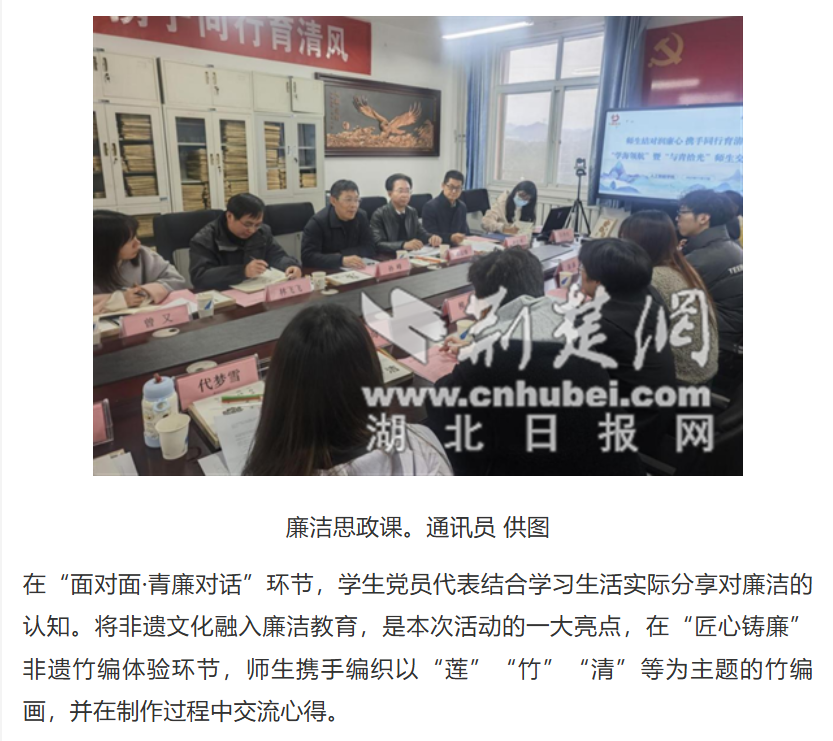 【荆楚网】清风对话浸润青春 人工智能学院打造“行走的廉洁课堂”