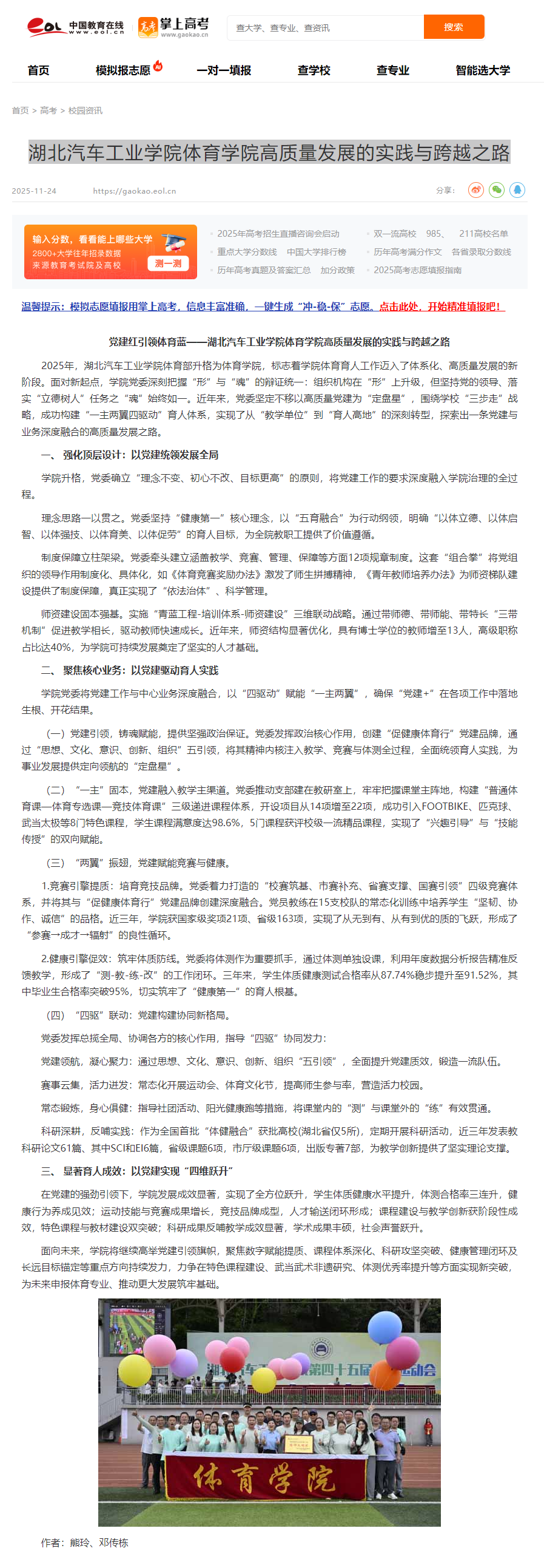 【中国教育在线】湖北汽车工业学院体育学院高质量发展的实践与跨越之路