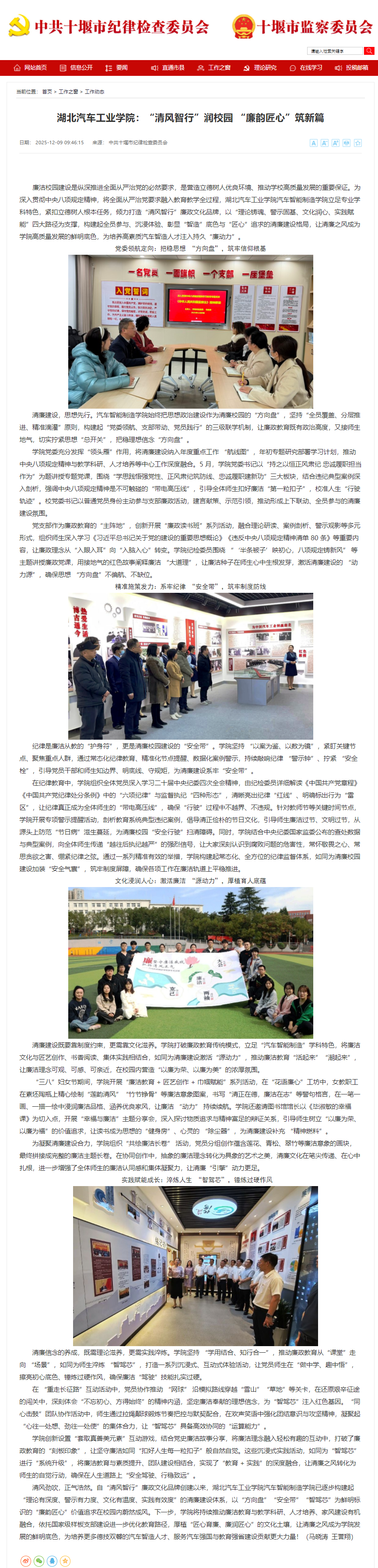 【十堰市纪委网站】湖北汽车工业学院:“清风智行”润校园 “廉韵匠心”筑新篇