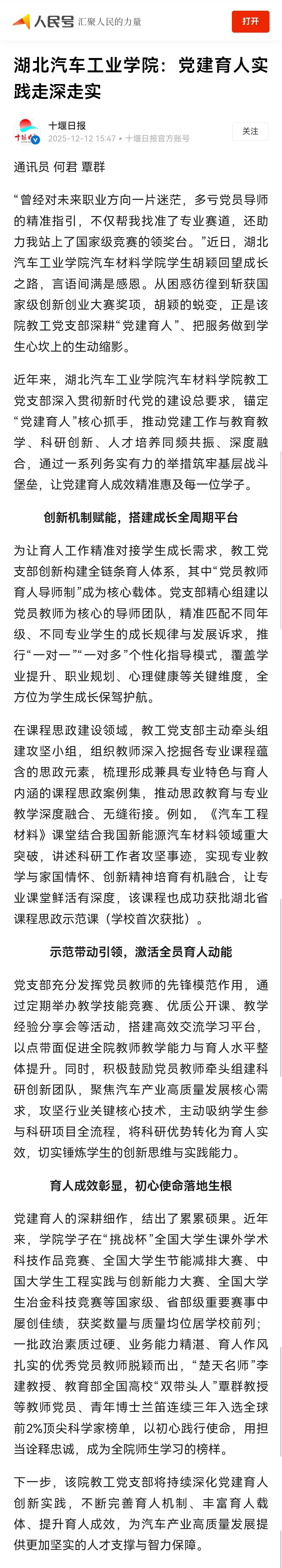 【人民号】湖北汽车工业学院:党建育人实践走深走实