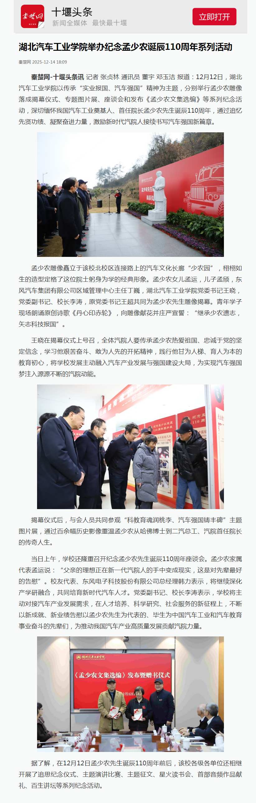 【秦楚网】湖北汽院举办纪念孟少农诞辰110周年系列活动
