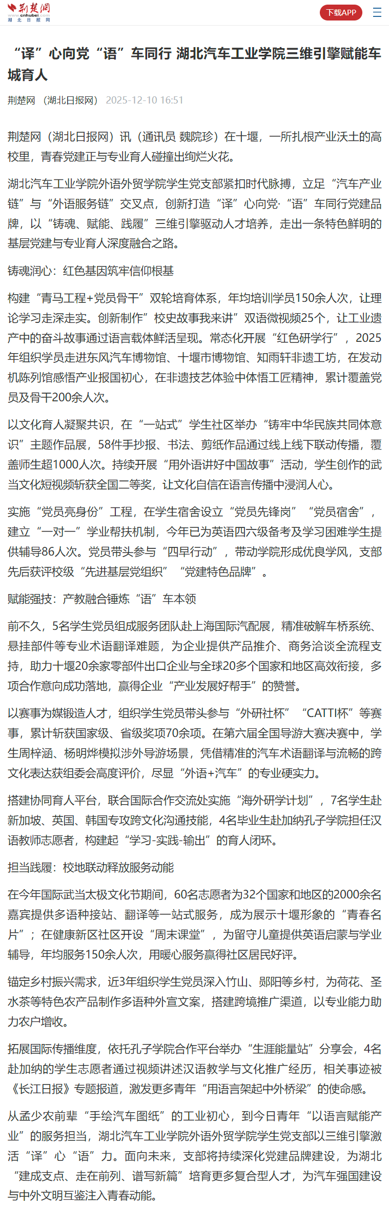 【荆楚网】“译”心向党“语”车同行 湖北汽车工业学院三维引擎赋能车城育人
