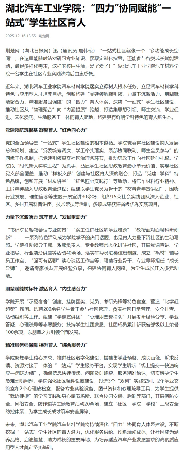 【今日头条】湖北汽车工业学院:“四力”协同赋能“一站式”学生社区育人