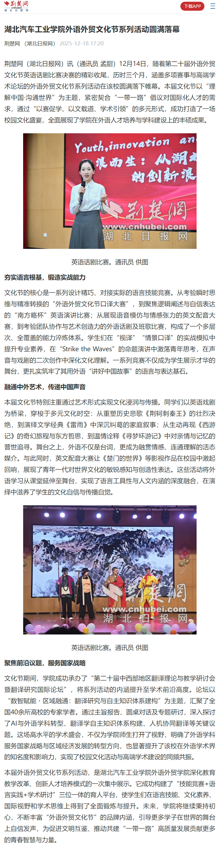 【荆楚网】湖北汽车工业学院外语外贸文化节系列活动圆满落幕