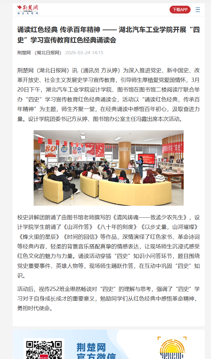 【荆楚网】诵读红色经典 传承百年精神 —— 湖北汽车工业学院开展“四史”学习宣传教育红色经典诵读会