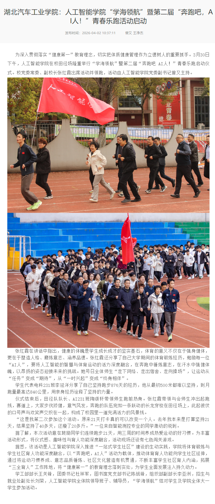 【全国高校思想政治工作网】湖北汽车工业学院:人工智能学院“学海领航”暨第二届“奔跑吧,AI人!”青春乐跑活动启动