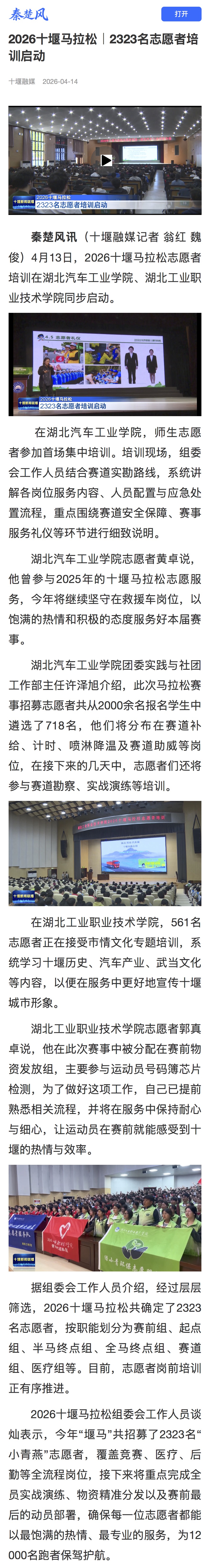 【十堰广电网】2026十堰马拉松|2323名志愿者培训启动